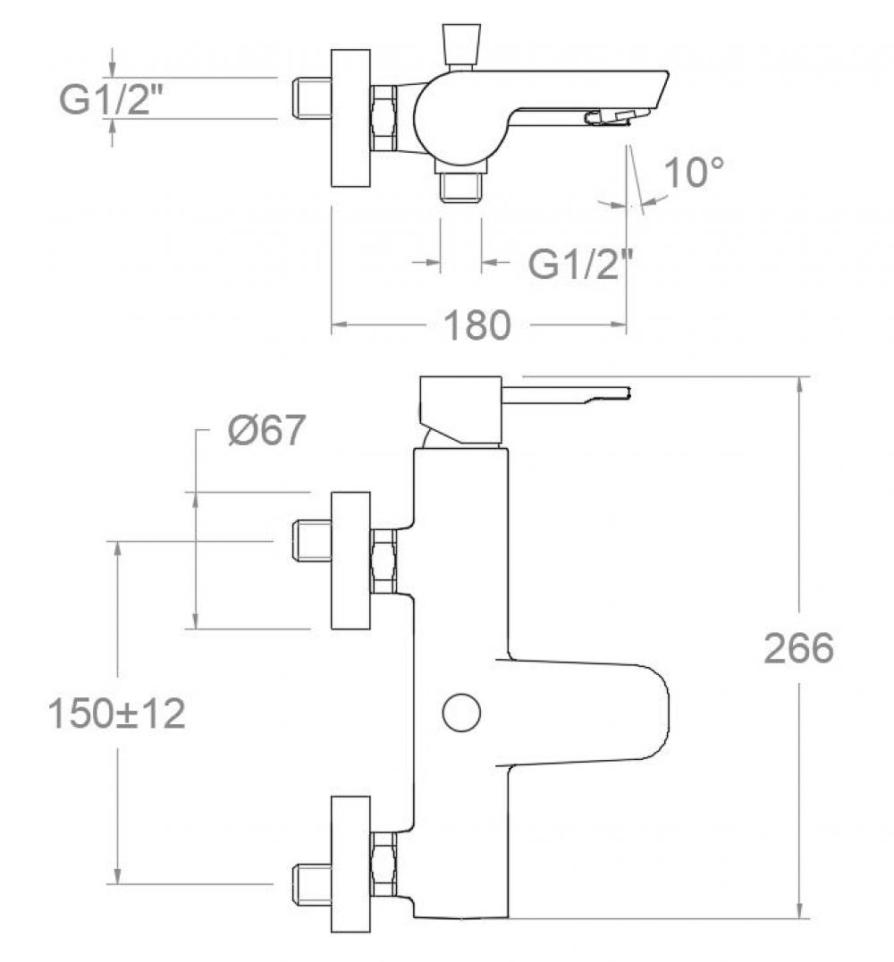Robinet monocommande pour baignoire-douche, sans équipement de douche. Système S2 d'économie d'eau de 50 % et limiteur de température. Finition or brossé de haute résistance grâce à son traitement électrostatique sur galvanisation.