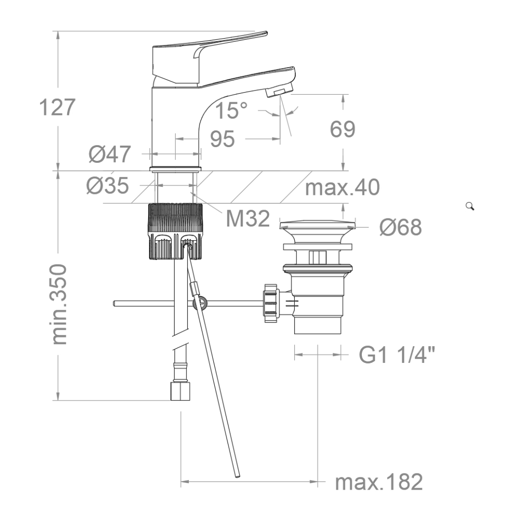 Arkadia, mitigeur de lavabo avec vidage ABS, économie d’eau et énergie, chrome