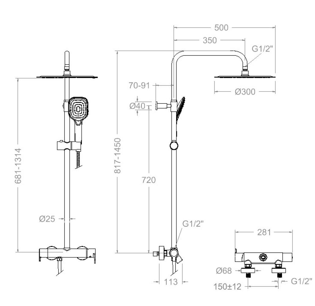 Blautherm. Columna de ducha telescópica monomando, rociador redondo de Ø300mm.