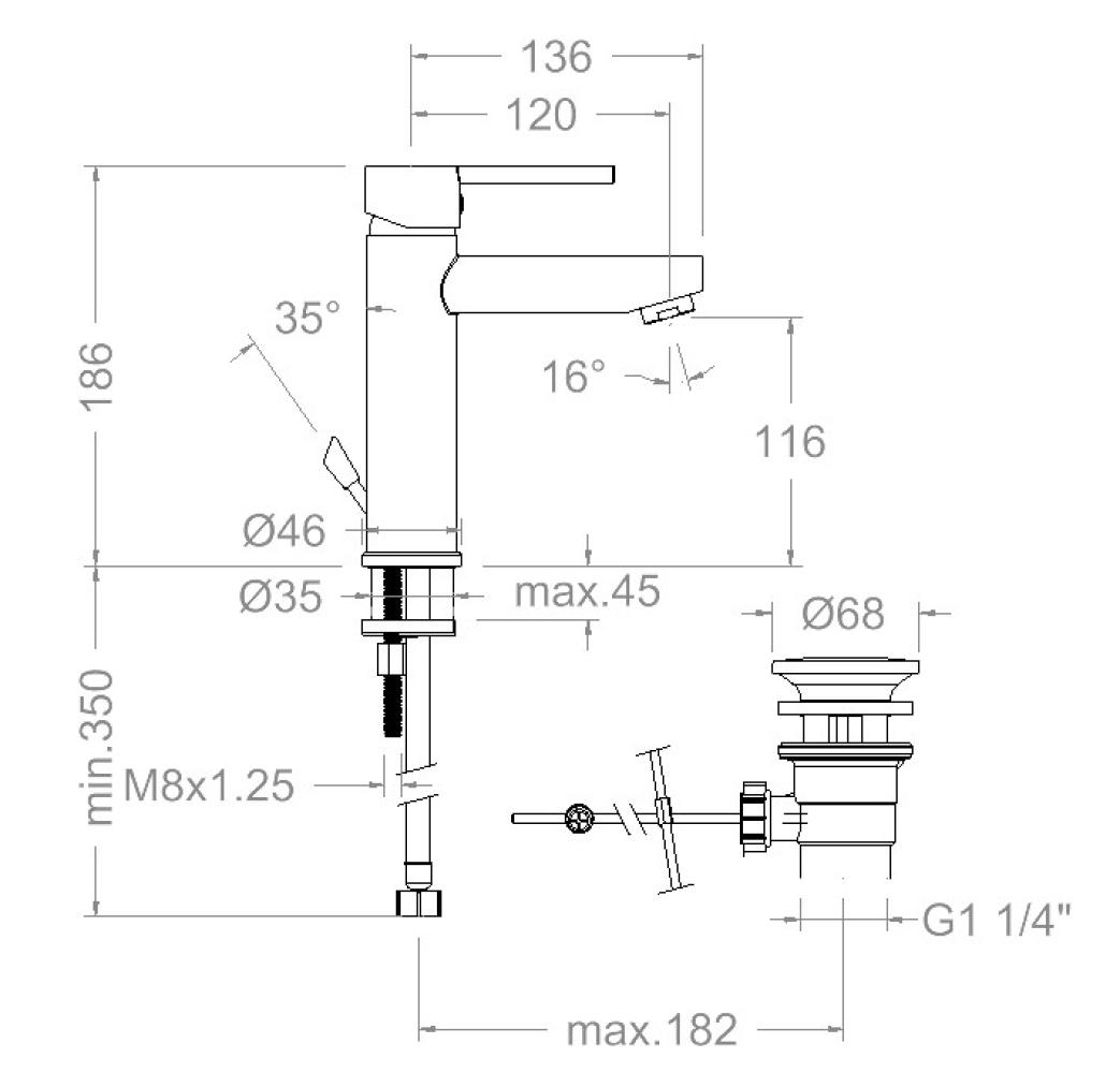 Drako,Breeam,monomando de lavabo,con válvula automática 1 1/4”,cromo