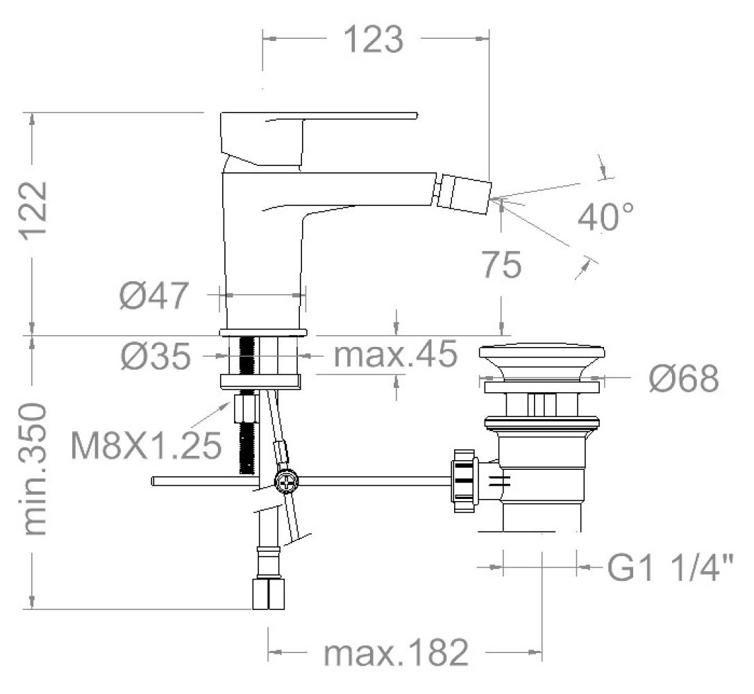 Alexia,monomando de bidé con válvula automática de inox 1¼,cromo