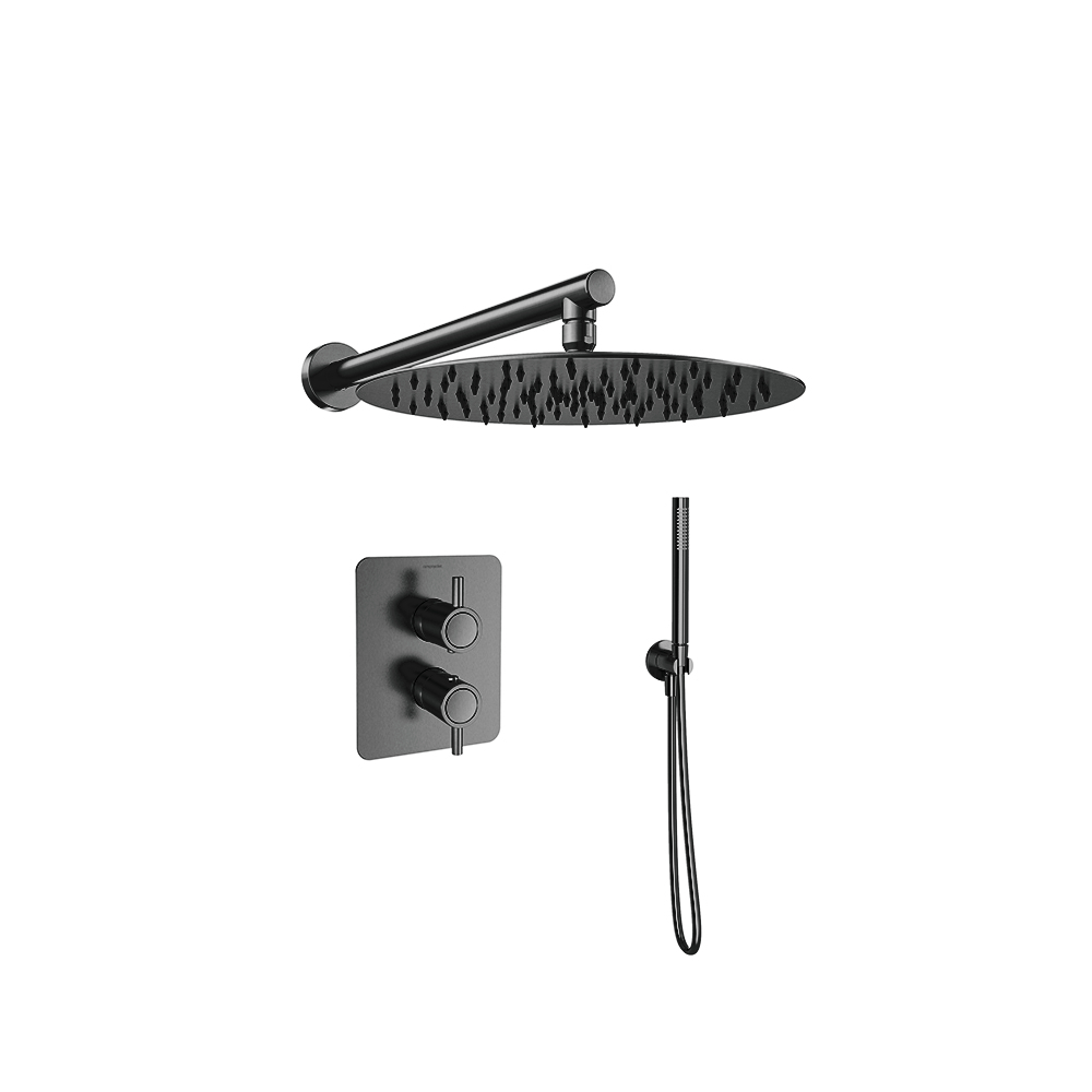 Odisea Joya, conjunto termostático empotrado 2 vías con ducha de mano y rociador metálico Ø 250 mm, cromo
